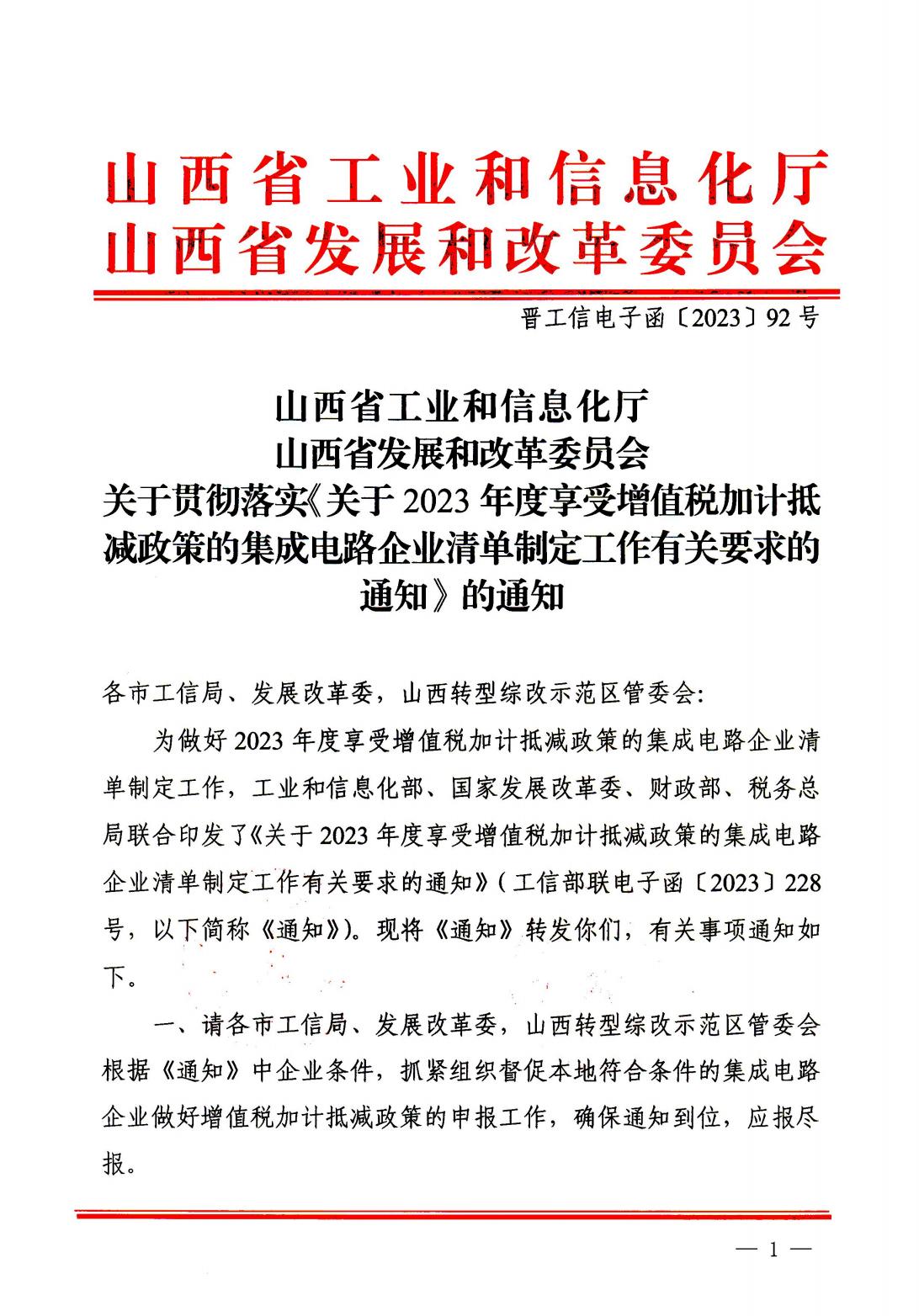 關(guān)于貫徹落實(shí)《關(guān)于2023年度享受增值稅加計(jì)抵減政策的集成電路企業(yè)清單制定工作有關(guān)要求的通知》的通知